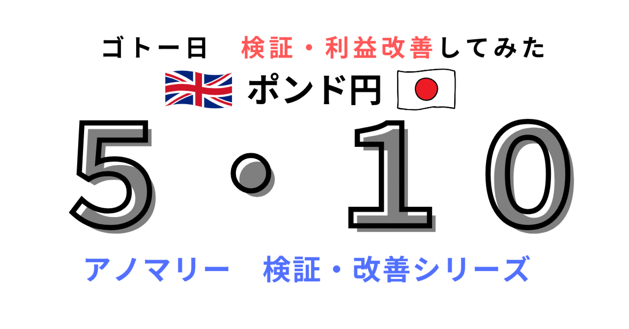 検証して利益改善してみた。順調に第3段までこぎつけました。 今回はゴトー日をポンド円で検証して利益改善していきます。 ちなみにゴトー日 ドル円の記事は下記をご覧下さい。 ゴトー日に関しては下記記事からご覧下さい。 FXアノマリー「ゴトー日」...